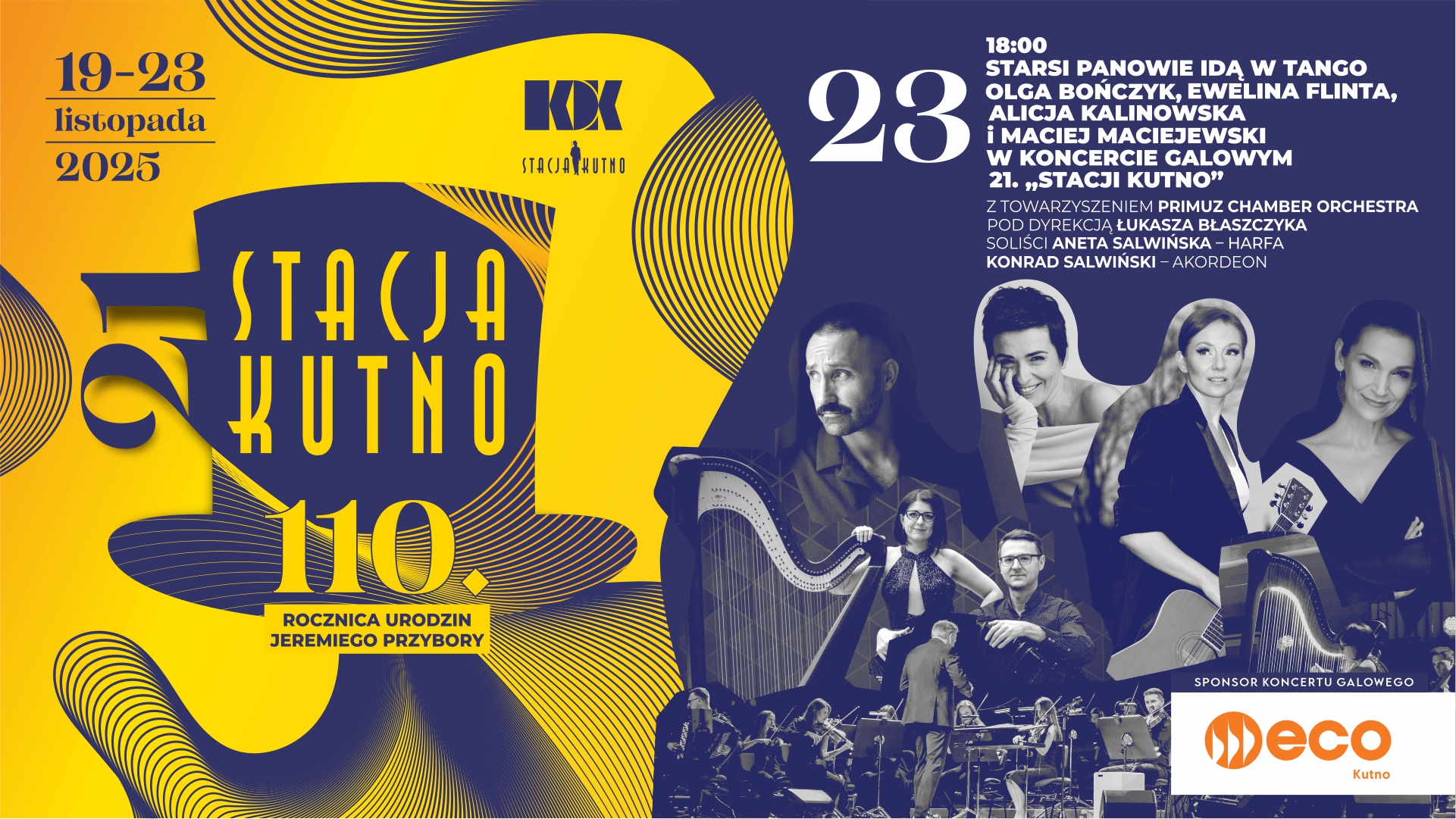 „Starsi Panowie idą w tango” to niezwykły projekt muzyczny, który zabrzmi w tym roku na gali finałowej Festiwalu „Stacja Kutno”. Na scenie zobaczymy i usłyszymy prawie 30 artystów! Wśród nich – znakomici wokaliści: Ewelina Flinta, Olga Bończyk, Alicja Kalinowska, Maciej Maciejewski, a także instrumentaliści: Aneta Salwińska (harfa) i Konrad Salwiński (akordeon). Dopełnieniem tego niespotykanego zestawienia głosów i instrumentów jest wszechstronne i dynamiczne brzmienie Primuz Chamber Orchestra pod dyrekcją Łukasza Błaszczyka. Program, specjalnie zaaranżowany na tę okazję, połączy w sobie elegancję słowa i melodii z rytmem tańca. Słynne piosenki Jeremiego Przybory i Jerzego Wasowskiego zyskają nową, taneczną odsłonę, tworząc barwne i pełne energii widowisko.