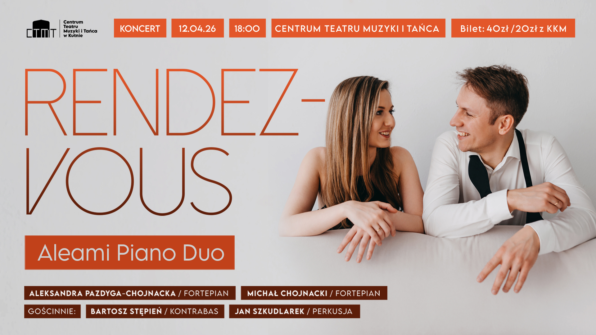 12 kwietnia 2026 Kutnowski Dom Kultury zaprasza na wyjątkowy wieczór z Aleami Piano Duo – jednym z najbardziej wyrazistych polskich duetów fortepianowych młodego pokolenia. Koncert nawiązuje do najnowszego albumu zespołu „Rendez-vous” i będzie spotkaniem różnych muzycznych światów.